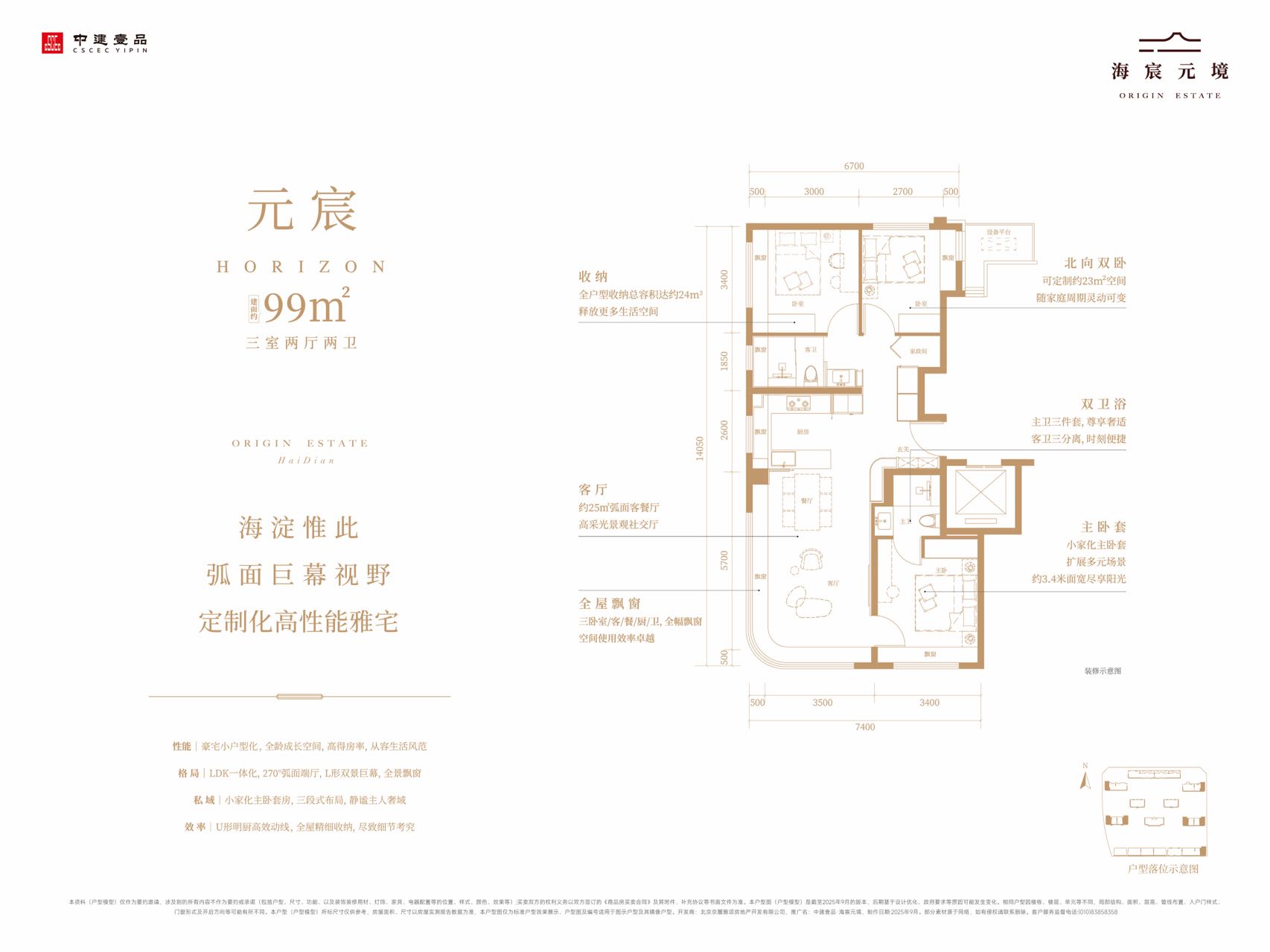 · 99㎡户型为两面宽,全部都是边户,总价低、得房率高、采光好。